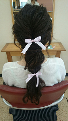 全体をゆる巻きにして、リボンをON。